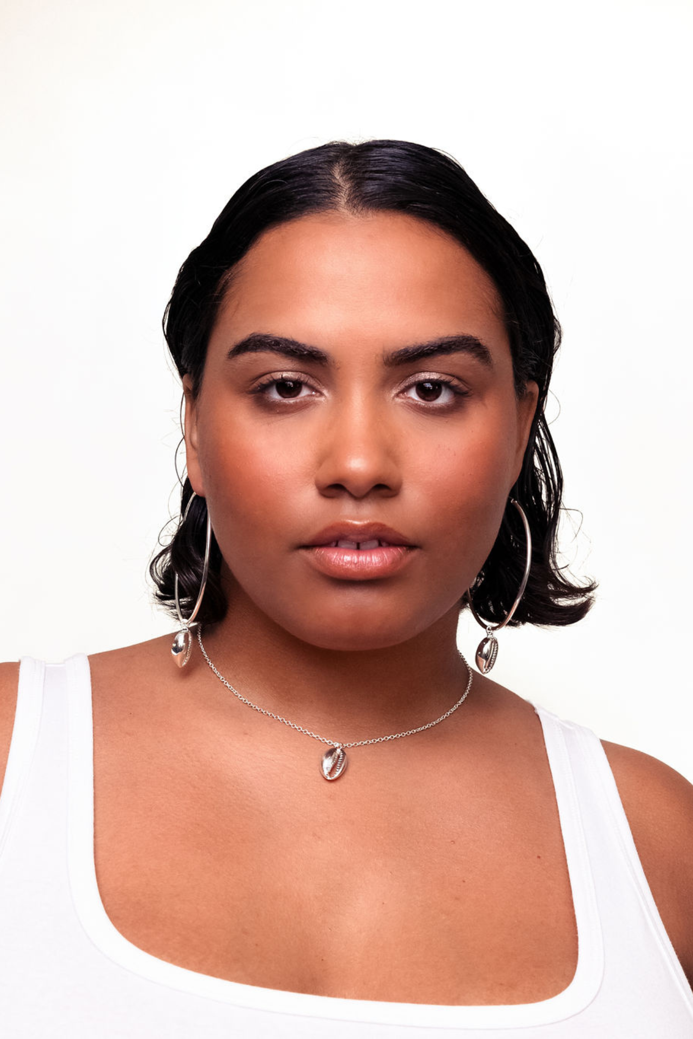 A sacred, West African symbol of wealth and prosperity, a metal, cowrie shell effortlessly elevates a fine, 14K gold or sterling silver chain.